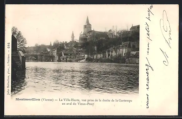 AK Montmorillon, La Ville-Haute vue depuis la Gartempe en aval du Vieux-Pont