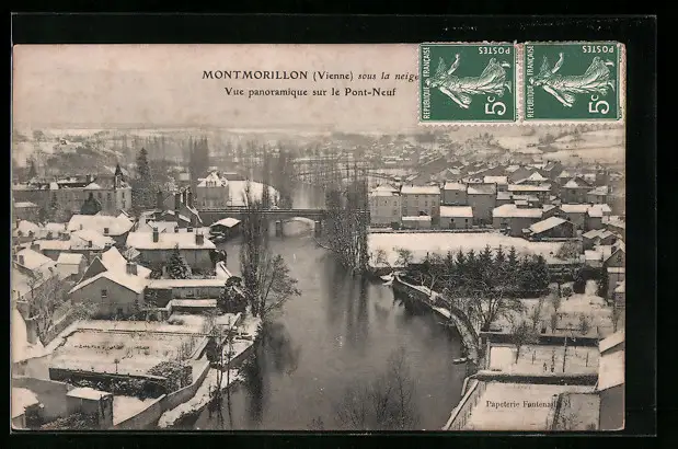 AK Montmorillon, Vue panoramique sur le Pont-Neuf