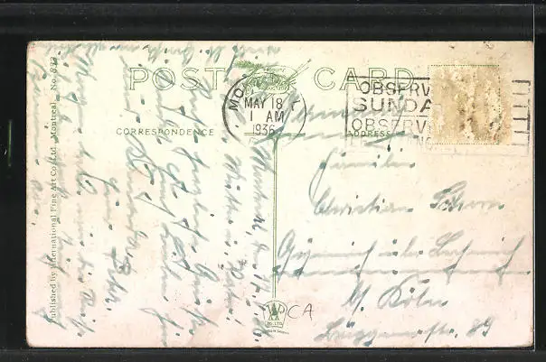 gelaufen 1936, Briefmarke entfernt, Stempelspur, sonst guter Zustand