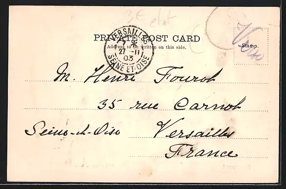 gelaufen 1903, Briefmarke entfernt, Stempelspur, guter Zustand