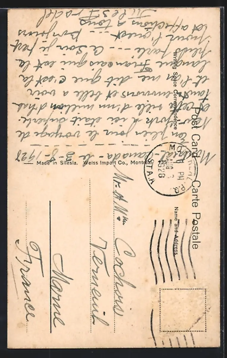 alte Ansichtskarte, gelaufen, Briefmarke entfernt, Abriebspur ecke unten li., guter Zustand