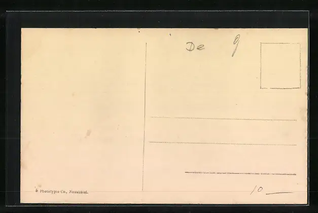 Personenbezogene Daten auf der Rückseite der Karte wurden durch blauen Textmarker unkenntlich gemacht. Die blauen Stellen sind auf die Vorderseite durchgeweicht und wirken sich negativ auf das Postkartenfoto aus