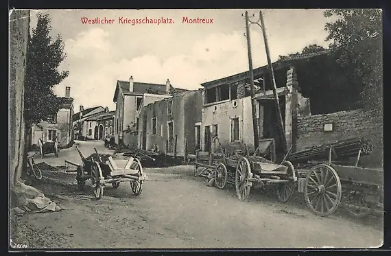 AK Montreux, Westlicher Kriegsschauplatz mit zerstörten Häusern