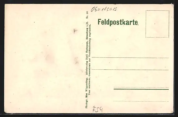 Personenbezogene Daten auf der Rückseite der Karte wurden durch blauen Textmarker unkenntlich gemacht. Die blauen Stellen sind auf die Vorderseite durchgeweicht und wirken sich negativ auf das Postkartenfoto aus