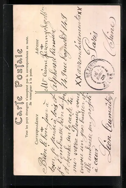 Personenbezogene Daten auf der Rückseite der Karte wurden durch blauen Textmarker unkenntlich gemacht. Die blauen Stellen sind auf die Vorderseite durchgeweicht und wirken sich negativ auf das Postkartenfoto aus