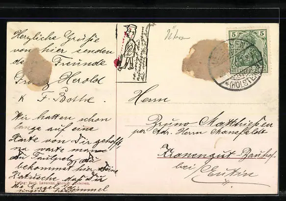 alte Ansichtskarte, gelaufen 1909, rückseitig Klebe- und Papierreste, guter Zustand