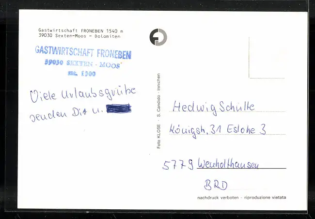 AK Moos in Sexten, Gastwirtschaft Froneben