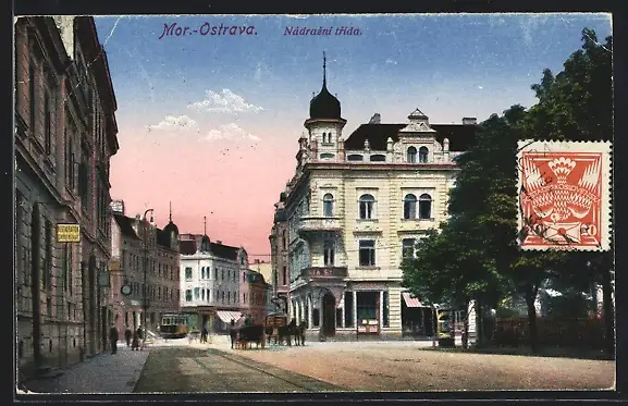 AK Mor.-Ostrava, Nádrazní trída, Strassenpartie im Ort