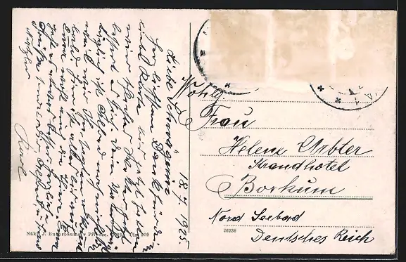 gelaufen 1925, Briefmarke entfernt, Bugspur li. oben, guter Zustand