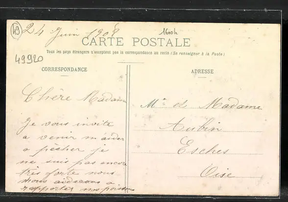 ungelaufen, Rückseite beschrieben 1908, guter Zustand