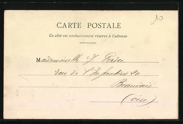 Personenbezogene Daten auf der Rückseite der Karte wurden durch blauen Textmarker unkenntlich gemacht. Die blauen Stellen sind auf die Vorderseite durchgeweicht und wirken sich negativ auf das Postkartenfoto aus