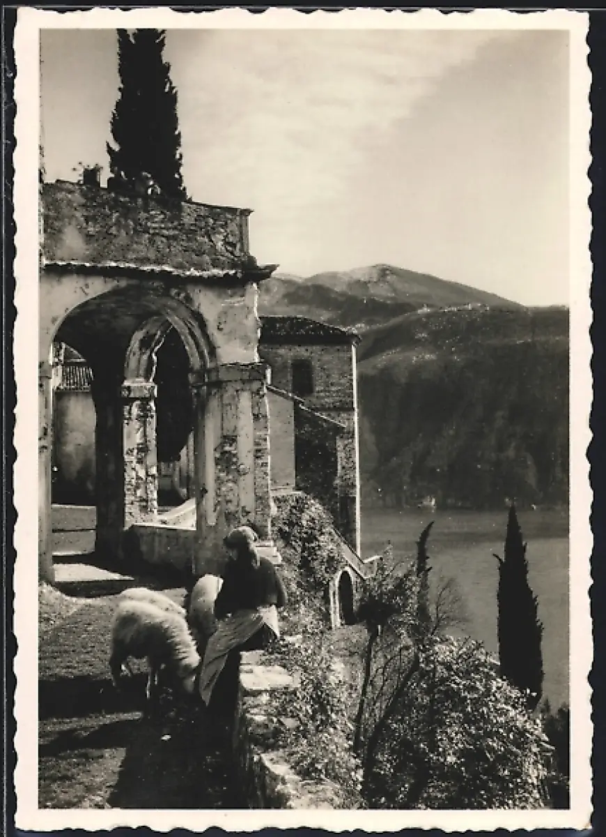 AK Morcote, Ortspartie mit Schafhirtin