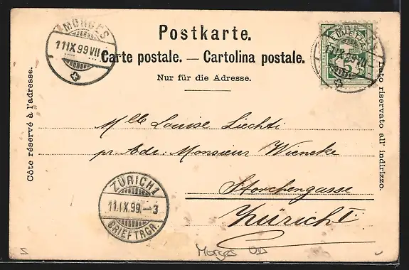 alte Ansichtskarte, gelaufen 1899, guter Zustand