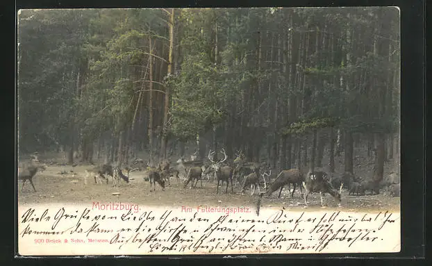 AK Moritzburg, Rehe am Fütterungsplatz
