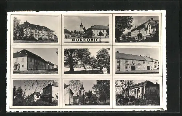 AK Morkovice, Ortspartie, Strassenpartie und Kirche