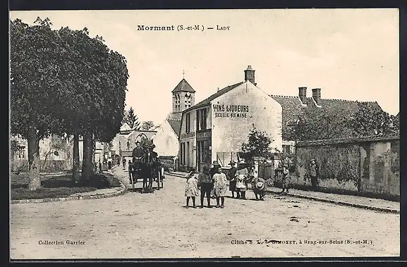 AK Mormant, Scène de rue avec enfants et calèche près de l`église