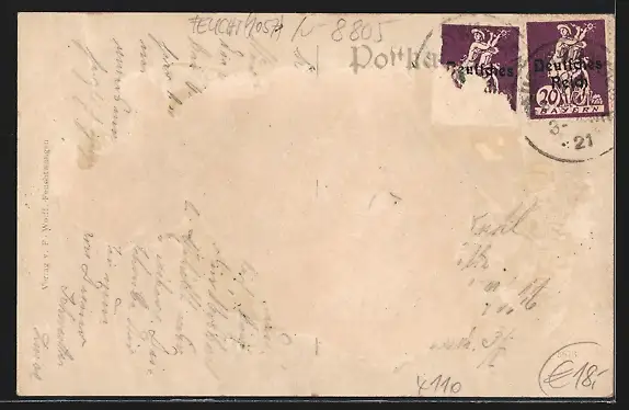 alte Ansichtskarte, gelaufen 1921, Briefmarke entfernt, rückseitig Oberflächenschaden, Bugspur oben re., guter Zustand