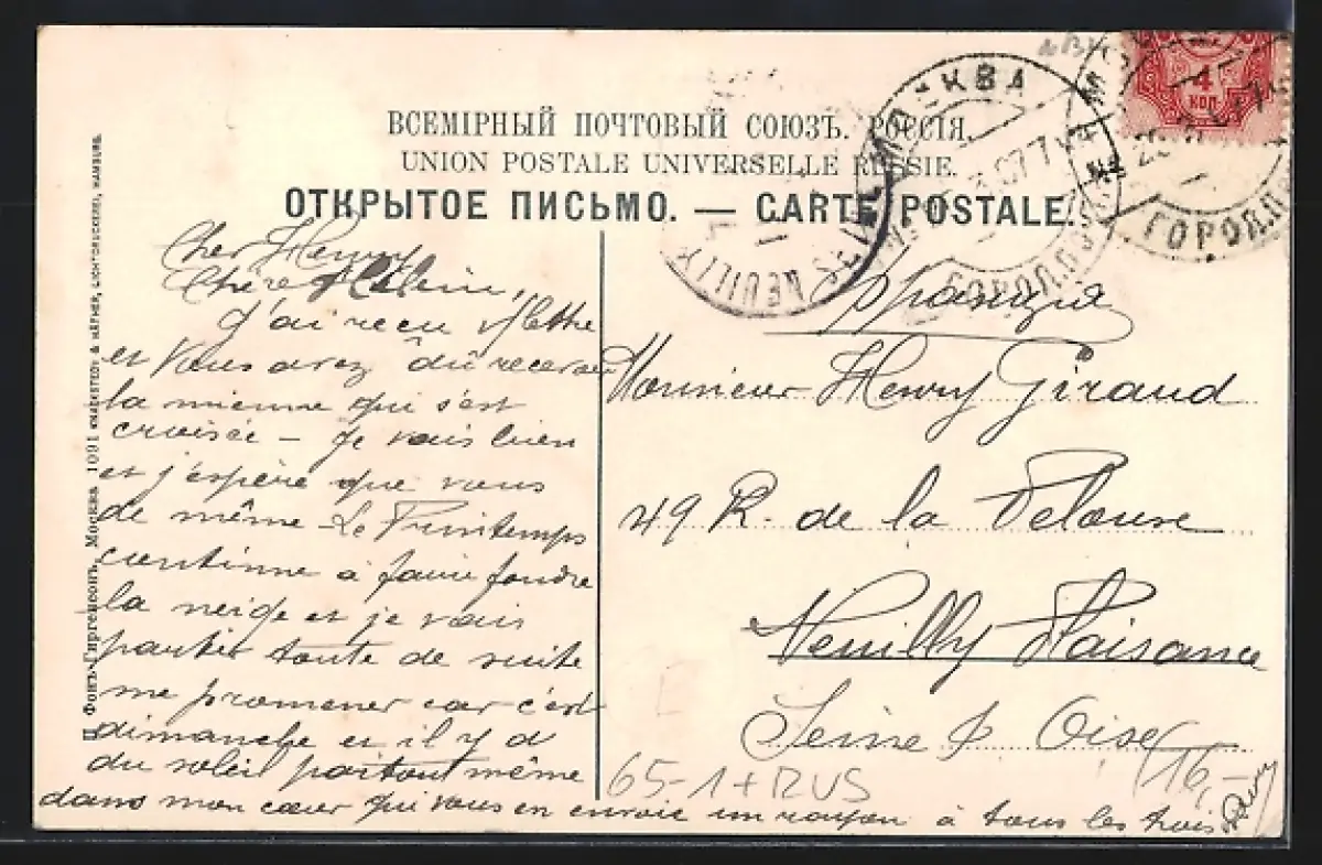 Personenbezogene Daten auf der Rückseite der Karte wurden durch blauen Textmarker unkenntlich gemacht. Die blauen Stellen sind auf die Vorderseite durchgeweicht und wirken sich negativ auf das Postkartenfoto aus