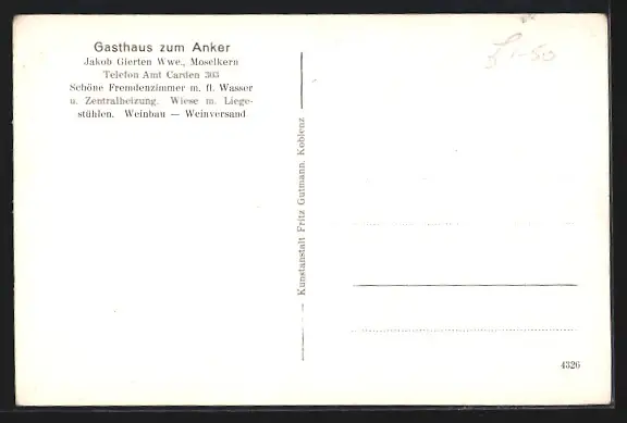 AK Moselkern, Gasthaus zum Anker, -Flagge
