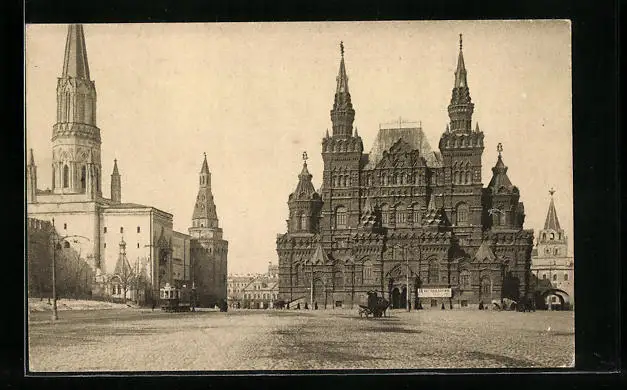 AK Moskau, Historisches Museum und Nikolski Pforte