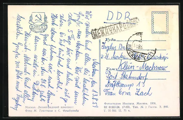 alte Ansichtskarte, gelaufen 1959, Briefmarke entfernt, guter Zustand