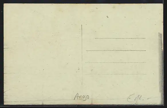 Personenbezogene Daten auf der Rückseite der Karte wurden durch blauen Textmarker unkenntlich gemacht. Die blauen Stellen sind auf die Vorderseite durchgeweicht und wirken sich negativ auf das Postkartenfoto aus