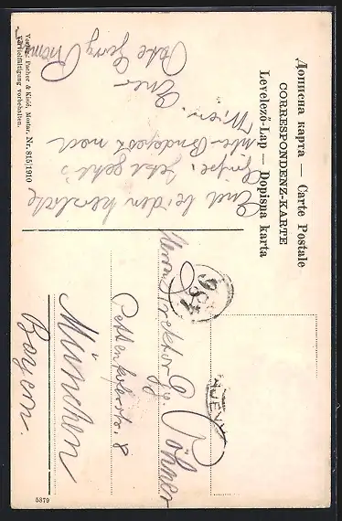 alte Ansichtskarte, gelaufen 1912, Briefmarke entfernt, rückseitig Oberflächenschaden, guter Zustand