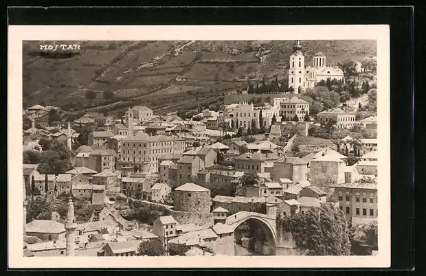 AK Mostar, Ortsansicht aus der Vogelschau