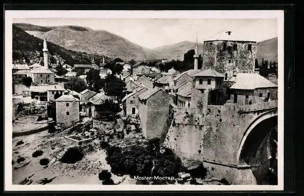 AK Mostar, Ortsansicht aus der Vogelschau