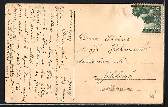 alte Ansichtskarte, gelaufen 1908, Briefmarke entfernt, rückseitig Oberflächenschaden, guter Zustand