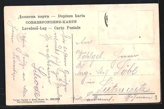 alte Ansichtskarte, gelaufen, Briefmarke entfernt, rückseitig Oberflächenschaden, guter Zustand