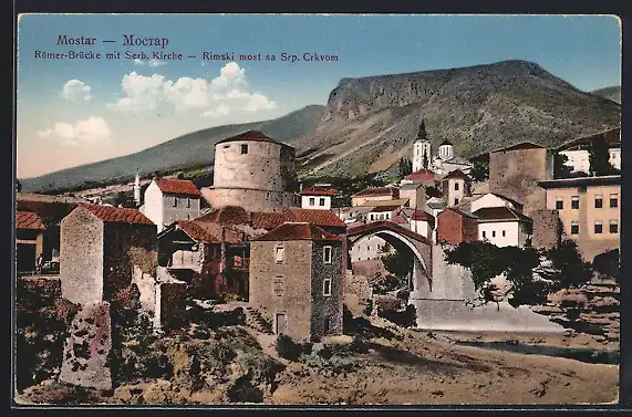 AK Mostar, Romer-Brücke mit serbischer Kirche