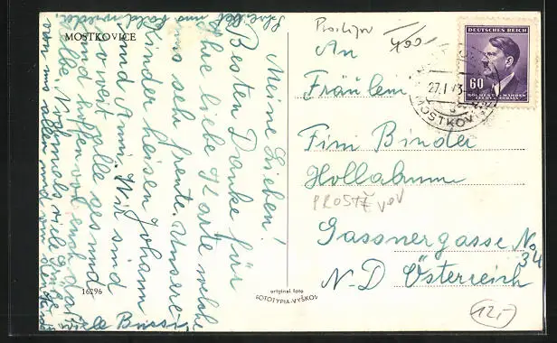AK Mostkovice, Strassenpartie im Sonnenschein, Hostinec