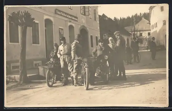 AK Motorrad-Fahrer halten vor einem Gasthaus