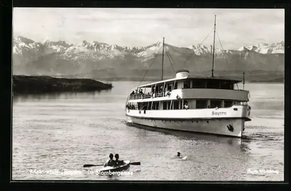 AK Motorschiff Bayern im Starnberger See, Paddelboot