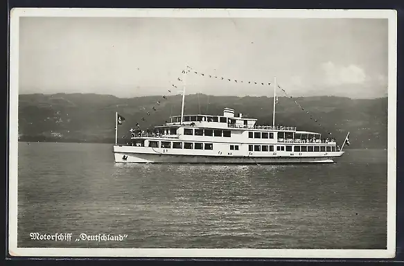 AK Motorschiff Deutschland in Flaggengala auf dem Bodensee
