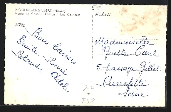 AK Moulins-Engilbert, Route de Chateau-Chinon, Les Carrieres