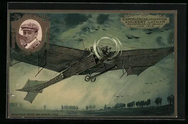AK Mourmelon-le-Grand, Pilot Hubert Latham in seinem Flugzeug 1909