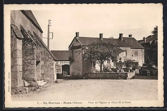 AK Moux /Nièvre, En Morvan, Place de l`Eglise et Hôtel de la Poste