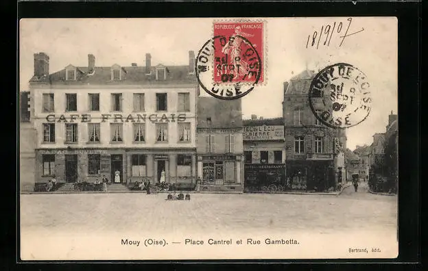 AK Mouy, Place Cantrel et Rue Gambetta