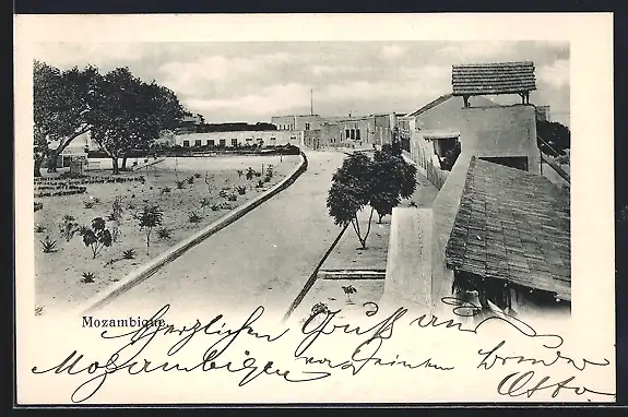 AK Mozambique, Ortspartie mit Strasse