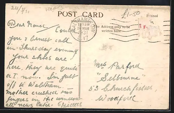 alte Ansichtskarte, gelaufen 1931, Briefmarke entfernt, guter Zustand