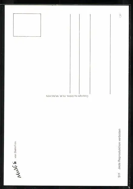 Personenbezogene Daten auf der Rückseite der Karte wurden durch blauen Textmarker unkenntlich gemacht. Die blauen Stellen sind auf die Vorderseite durchgeweicht und wirken sich negativ auf das Postkartenfoto aus