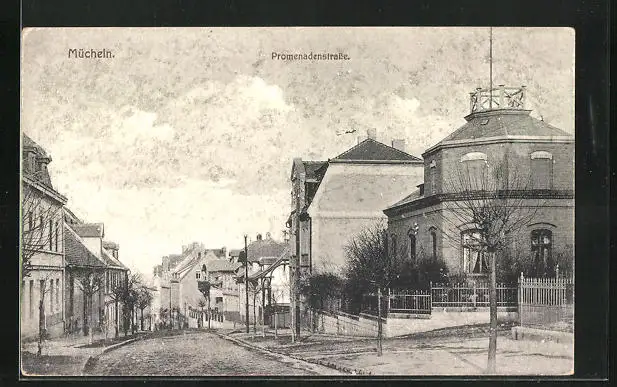 AK Mücheln, Promenadenstrasse mit Bäumen