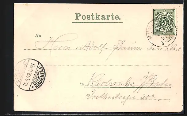 alte Ansichtskarte, gelaufen 1899, guter Zustand