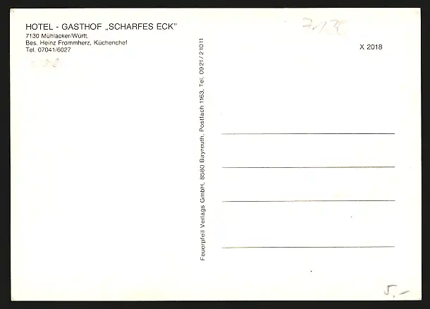 AK Mühlacker /Württ., Ortsansichten, Hotel- Gasthof Scharfes Eck