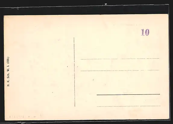 Personenbezogene Daten auf der Rückseite der Karte wurden durch blauen Textmarker unkenntlich gemacht. Die blauen Stellen sind auf die Vorderseite durchgeweicht und wirken sich negativ auf das Postkartenfoto aus