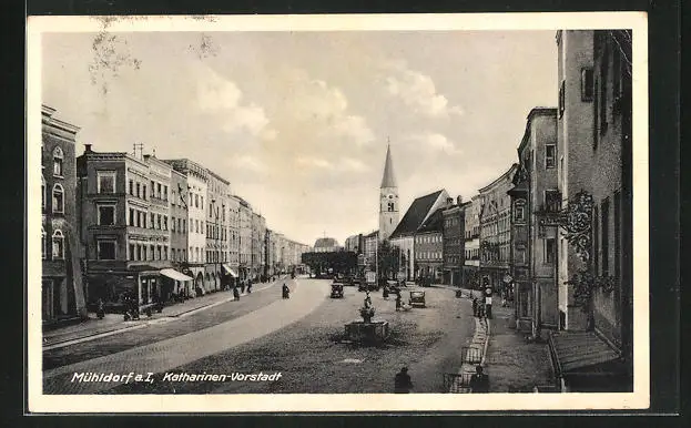 AK Mühldorf a. I., Strassenpartie in der Katharinen-Vorstadt