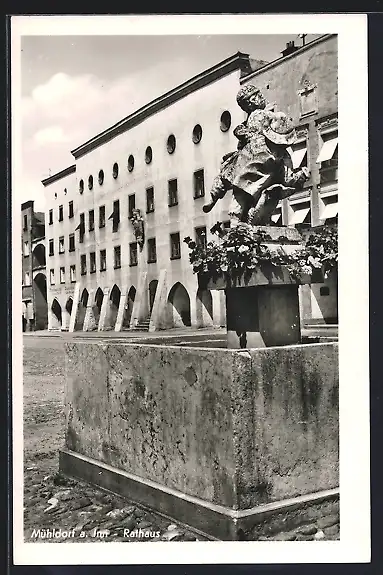 AK Mühldorf a. Inn, Rathaus mit Brunnen
