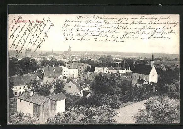 AK Mühldorf a. Inn, Teilansicht mit Kirche